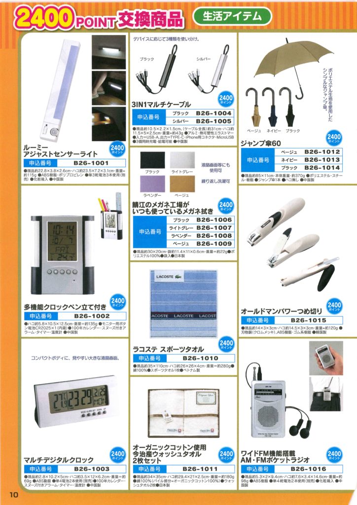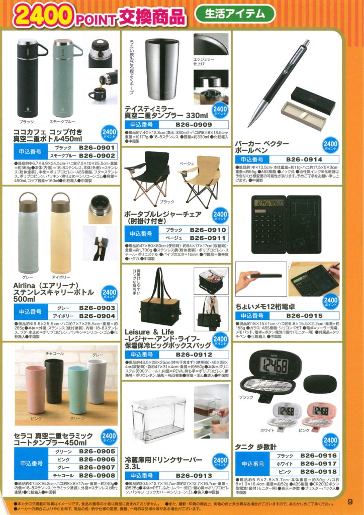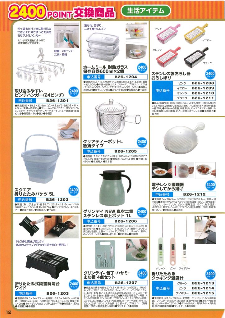 YCポイントクラブカタログ2025年版 ※注意)カタログ商品はお届けまでに1ヶ月ほどお時間をいただきます ※注意)カタログ商品に限り1回100Pの発注POINTをいただきます 1200POINT商品リスト 2400POINT商品リスト 下記からダウンロードもできます‼ 2025カタログ全体ダウンロード